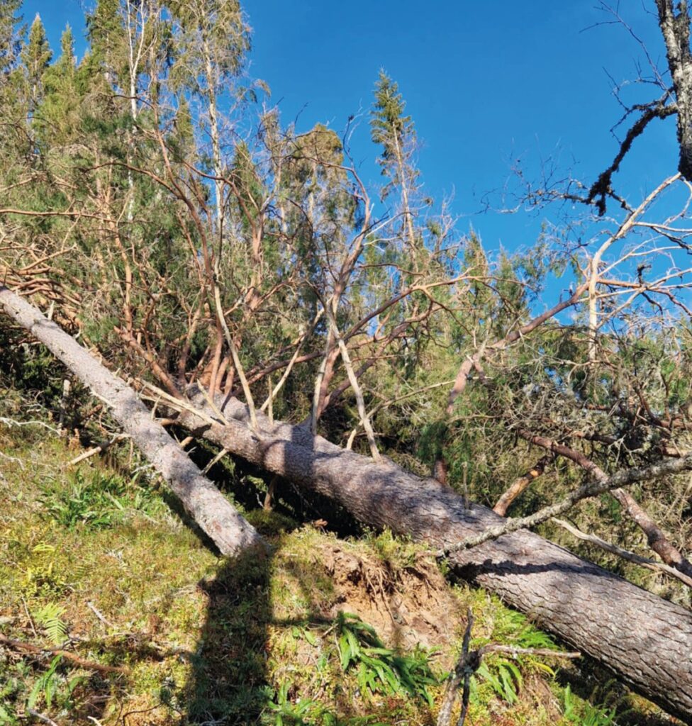 Men tilbake til Nord-Vestlandet. Skogen på Mørekysten er vanligvis stormsterk og vant til vind, men denne gangen var vindretningen fra sør/sørøst. Det ga odde utslag.