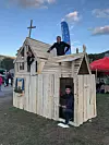 Studentene fikk også kjørt seg i plankehyttebyggingen med den yngre garden av gjester. Noe som så ut til å motivere kreativiteten. Resultatet ble en «moderne» stavkirke, som gled rett inn i Telemarks-arkitekturens tradisjoner. Lystig musikk til arbeidet fikk de også fra nabostanden som kontinuerlig sang om sin «Ferguson».