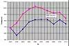 Når det gjelder tilvekst ser vi av figur 2 at det er hogsten av oppspart virke i hogstklasse fem i starten av første periode som fører til at