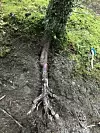 I alle de undersøkte bestandene var barkskader på røtter mest hyppige langs dyrestier og de eldste skadene var 16–19 år gamle. Trær med rotskader viste en reduksjon på 10–20 % tilvekst ved brysthøyde. Siden det bare var noen trær som hadde disse skadene er reduksjonen i tilvekst for bestandene sett under ett, sannsynligvis lavere. Barkskadene på røttene var generelt større jo lengre unna rothalsen skaden hadde oppstått. Skadene var preget av avskallet bark der det kunne være flere titalls centimeter eksponert rotved på de overflatiske delene av hovedrøttene. Nær rothalsen og ved stammebasis, hvor barken er relativt tykk, var skadene generelt bare noen få kvadratcentimeter store, dekket av kvae og uten synlig ved.