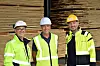 Fra venstre avtroppende fabrikksjef Ole Grimsgaard, adm. dir Jan-Erik Engebretsen i Hasås as og påtroppende fabrikksjef Håkon Helgerud Myhra.