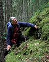 GRUNT: Kalksteinen ligger rett under mosedekket viser Tor Erik Brandrud.