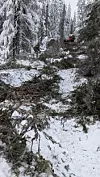 – Det hadde gjort seg med litt mer og kompakt snø som kunne flatet ut dette steinete området. Ellers er det fin tele og gode og kalde forhold her i fjellskogen nå.