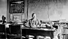 Skogdirektør Karenus Olsen Sørhuus på sitt kontor. Nasjonalbiblioteket har et opptak av et radiointervju med Sørhuus fra 1939. Det finner du på nb.no, nettbiblioteket og søk på «Sørhuus», under kategorien Radio. Foto: Anno Norsk Skogmuseum