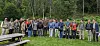 Klima og miljøminister Andreas Bjelland Erikssen inviterte deltagerne på det internasjonale ministermøtet om Naturavtalen i Oslo i juni, på fottur i vår nyeste nasjonalpark, Østmarka. Her er hele delegasjonen med ministre, følge, arrangører og andre inviterte utenfor Sandbakken Sportsstue i Østmarka. (Foto: Line Venn)