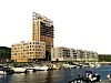 UTSIKT: Skogkurs ́ nye lokaler ligger i øverste etasje i klossen til venstre for Mjøstårnet. Foto: John Are Lindstad.
