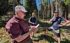 Per Rudi, tidligere skogbrukssjef i Kongsvinger har blinket skjermer på eiendommen på Kalneset på fritida og har «all» informasjon i notatbøkene sine. Praksisen startet før Daniel Kulblik tok over etter faren sin. Daniel i midten og kamerat og fagkollega Håkon Skaraberget i StoraEnso til høyre.