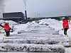 JANUAR: På Soknabruket må mer av tømmeret måles på gamlemåten. Her er det Rune Østdal og Øyvind Nerhagen fra Norsk Virkesmåling som svinger klaven.