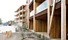 NORSK TRELAST Blokkene ligger på en tomt sprengt ut i åsen over Fetsund og Glomma, øverst, men ikke så høyt at de bryter horisonten. Og med duse jordfarger som går i ett med skogen. Under blokkene er det støpt parker ingskjeller, men over den er det kun brukt betong i våtromskabinettene. Det er brukt massivtre i heis og trappe sjaktene og etasjeskillene er også i tre. – Vi taper 2030 cm i høyden ved å bruke tre i etasjeskillene. Til gjengjeld går det veldig fort å bygge når alt er i tre. Vi heiste på plass en etasje i uka. Og fabrikken produserte også en etasje i uka, 90 løpemeter vegg om dagen, forteller Hafskjold. Fabrikken han sikter til er Støren Treindustri som lager ferdige elementer. – Det er utelukkende norsk treverk i husene våre. Her er det brukt ele menter fra Støren som igjen har sine norske leverandører i Kjeldstad Trelast og Alvdal Skurlag, og limtre fra Moelven, sier Kronberg. Blokkene har royalimpregnert kled ning, og Hafskjold forteller at da nyheten om at royalimpregneringen var feildeklarert kom, var byggene så å si ferdig montert.
