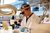 PÅ LAB: Etterarbeidet på laboratoriet på NMBU gikk ut på å se på borreprøvene i mikroskop og smøre på en blanding som farget kjerneveden rød. På denne måten kunne Kolbjørn måle diameter til kjerneveden.