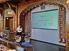 Leder i Norsk forening for miljørett, Gunnhild Storbekkrønning Solli, ønsker deltagerne velkommen til høstens første medlemsmøte i festsalen på NMBU.