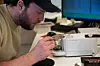 STØDIG PÅ LABBEN: Man må ha en stødig hånd når man utfører analyser på laboratoriet. Jordprøvene blir puttet i sølvfolie og tørket slik at man kan gjøre videre analyser på dem.